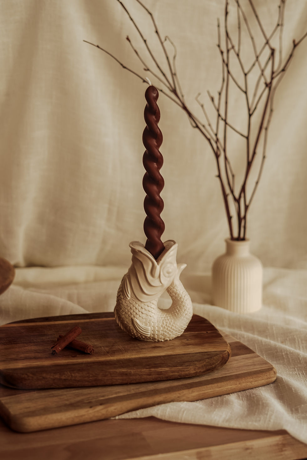 Seasonal centrepiece: display it on a tray with candles, pinecones, or dried leaves